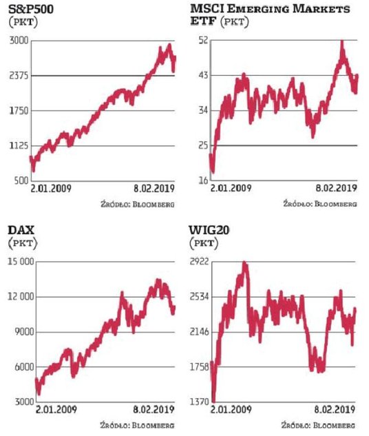 Perspektywy amerykańskiej gospodarki na razie aż tak złe nie są, choć kłopoty mogą się pojawić szybciej, niż się oczekuje. Między innymi z powodu niedawnego kilkutygodniowego zawieszenia działalności części rządowej administracji, którego konsekwencje mogą być widoczne w dynamice PKB już wkrótce, zanim przyjdzie czas na „właściwe", cykliczne spowolnienie. Na razie nastroje na nowojorskim parkiecie popsuły wieści z Europy, a także pogłoski, że może nie dojść do zapowiadanego spotkania Donalda Trumpa z Xi Jinpingiem, co sugerowałoby brak postępów w negocjacjach dotyczących relacji między USA i Chinami. Zresztą korekta już się Wall Street „należała", biorąc pod uwagę, że S&P500 od ubiegłorocznego grudniowego dołka zyskał 16,5 proc. I wszystko wskazuje na to, że korekta w końcu nadeszła. Bilans pierwszych czterech sesji minionego tygodnia dla S&P500 wychodzi co prawda na zero, ale czwartkowy, niemal 1-proc. spadek i naruszenie w ciągu dnia poziomu 2700 punktów to pierwsze wyraźne jej oznaki.