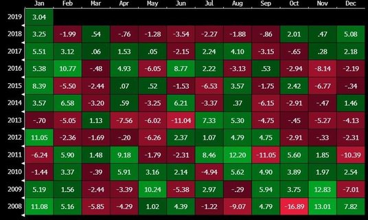 Ole S. Hansen z Saxo Banku, specjalizujący się w tematyce surowców, przedstawił grafikę, na której pokazał miesięczne stopy zwrotu z inwestycji w złoto.