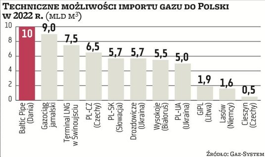 Kluczową inwestycją jest budowa Baltic Pipe, gazociągu mającego połączyć Polskę z norweskimi złożami. Ważną rolę będzie odgrywał też rozbudowany terminal LNG w Świnoujściu, do którego może trafiać surowiec z każdego miejsca na świecie, gdzie są instalacje do jego skraplania. Nie można wreszcie zapominać o gazociągach, które połączą nasz kraj z Litwą, Ukrainą, Słowacją i Czechami. Szczególnie przydatny może być ten pierwszy. Litwa, podobnie jak Polska, posiada terminal LNG, z którego zapewne moglibyśmy skorzystać, gdyby się okazało, że nasz gazoport pracuje na pełnych mocach. Mniejsze znaczenie wydają się mieć połączenia ze Słowacją i Czechami.