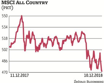 Globalny indeks MSCI All Countries spadł w poniedziałek do najniższego poziomu od 16 miesięcy. Na giełdach całego świata dominował pesymizm przejawiający się umiarkowanymi spadkami. Chiński indeks Shanghai Composite zamknął się 0,8 proc. na minusie. Niemiecki indeks DAX spadał po południu 0 0,6 proc., a polski WIG 20 tracił wówczas 0,4 proc. Inwestorzy niepokoją się przede wszystkim o możliwość zaostrzenia się wojny handlowej pomiędzy USA a Chinami. O ile 1 grudnia, po szczycie G20 w Buenos Aires, amerykański prezydent Donald Trump i chiński przywódca Xi Jinping doszli do porozumienia w sprawie 90-dniowego rozejmu handlowego i zapowiedzieli nowe negocjacje, o tyle zeszłotygodniowe aresztowanie w Sabriny Meng Wanzhou, dyrektor finansowej koncernu Huawei, postawiło ten rozejm pod znakiem zapytania. A czasu na negocjacje jest mało.