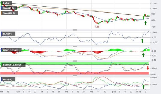 Notowania akcji energetycznej spółki rosną od połowy września. W ciągu dwóch miesięcy walory podrożały o 19,6 proc. Trwająca fala zwyżek to w ujęciu długoterminowym korekta w układzie bessy. Jej skala i przebieg wyglądają jednak obiecująco. Wskazuje na to kilka powodów. Po pierwsze w ubiegłym tygodniu kurs przebił linię trendu spadkowego, co jest wstępnym sygnałem zmiany dominującej tendencji. Po drugie notowania pokonały średnie kroczące z 15 i 100 sesji, co potwierdza możliwość przesilenia. Po trzecie pozytywne sygnały widać też na wskaźnikach – ROC(14) jest powyżej linii 0, MACD rośnie i także przekroczył 0, a linia ADX rośnie przy +DI poruszającym się powyżej –DI. Krótkoterminowe wykupienie sygnalizuje wolny oscylator stochastyczny, co może zapowiadać korektę. Układ najbliższych barier technicznych wygląda następująco: wsparciem jest pułap 7,8 zł, a oporem okolica 9,6 zł. Przebicie tego pierwszego poziomu zaneguje optymistyczny scenariusz, a pokonanie drugiego będzie tego scenariusza kolejnym potwierdzeniem.
