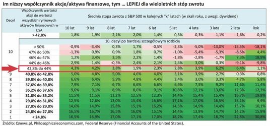 Nie będziemy w tym miejscu opowiadać się po którejkolwiek stronie rynkowej dyskusji. Chcemy jednak pokazać, co spadki na Wall Street mogą oznaczać dla przyszłych długoterminowych stóp zwrotu. A przez słowo „mogą" rozumieć tu będziemy nie nasze subiektywne „wywody", lecz bardzo konkretne narzędzie sprawdzone historycznie.
