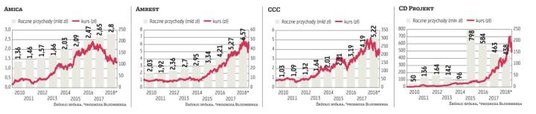 – CD projekt można porównać do sportowca, który ma za sobą niezłe sezony, w których poprawiał wyniki. Daje to nadzieje na dalsze dobre efekty w przyszłości, jednak nie daje gwarancji, że tak będzie. Moim zdaniem obecna wycena CD Projektu jest bardzo wysoka, biorąc pod uwagę uzyskiwane wyniki finansowe. Oczywiście jeśli „Gwint" i „Cyberpunk" okażą się sukcesami, to możemy zobaczyć kolejne pobudzenie nadziei inwestorów. Biorąc pod uwagę relacje korzyści do ryzyka, a także przecenę wielu spółek, wydaje się, że można znaleźć na rynku atrakcyjniejsze okazje z lepszą relacją potencjalnego zysku do ryzyka – uważa Namysł. Zdaniem analityków DM Millennium wycena CD Projektu w szczytowym momencie, napędzana oczekiwaniami co do „Cyberpunka" i modą na tę branżę, poszła zbyt daleko. – W krótkim okresie największy wpływ na wycenę CD Projektu – z braku innych informacji („Gwint" to raczej niewielka produkcja i bez wpływu na wycenę firmy) będzie miała sytuacja na rynku Nasdaq. Bessa może sprowadzić kurs poniżej 100 zł – argumentują.