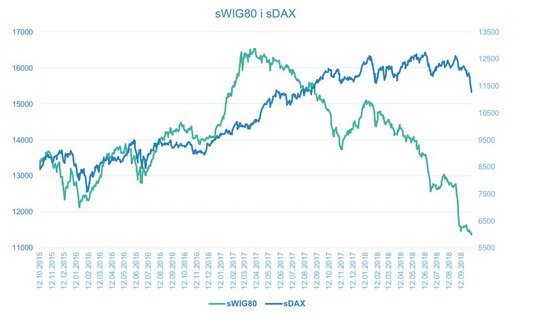 – Nasz sWIG80 spada bardziej okazale, i to bez wcześniejszej hossy. Też mamy w nim m.in. innowacyjne spółki z branży medycznej, gamingowej i finansowej. W tle za spadkami stoi dość wyraźnie innowacyjny windykator z Wrocławia. Reasumując, oba indeksy wyglądają źle, ale pole do popisu mają teraz niedźwiedzie za Odrą. Jak mówi stare niemieckie porzekadło „Den Letzten beissen die Hunde” („Ostatnich gryzą psy”). Z inwestycyjnego punktu widzenia mocne sygnały sprzedaży sDAX mają swoje konsekwencje w spojrzeniu na szerokiego DAX – ocenia Adam Łaganowski.