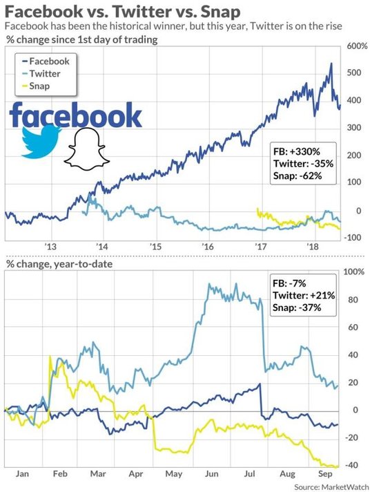 Na takie pytanie postanowił poszukać odpowiedzi serwis MarketWatch. Jednak, jak to zawsze bywa przy zakupie akcji, ostateczna odpowiedź zawsze zależy od przyjętego horyzontu inwestycyjnego. Jeżeli akcje konkretnego serwisu społecznościowego – Facebooka, Twittera, a także Snap Inc. – zostały nabyte podczas debiutu każdej ze spółek na amerykańskiej giełdzie, to zdecydowanie najlepiej swój kapitał ulokowali akcjonariusze Facebooka. Od debiutu na giełdzie firmy Marka Zuckerberga akcje urosły o ponad 330 proc. Z kolei akcjonariusze Twittera stracili od debiutu ok. 35 proc.