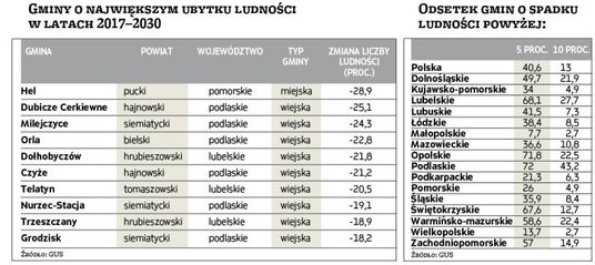 Do 2030 r. – jak prognozuje GUS – większość głównych ośrodków miejskich odnotuje spadek populacji. Spośród 39 miast powyżej 100 tys. mieszkańców jedynie w sześciu wystąpi wzrost liczby ludności (Rzeszów, Warszawa, Gdańsk, Kraków, Wrocław oraz Zielona Góra).
