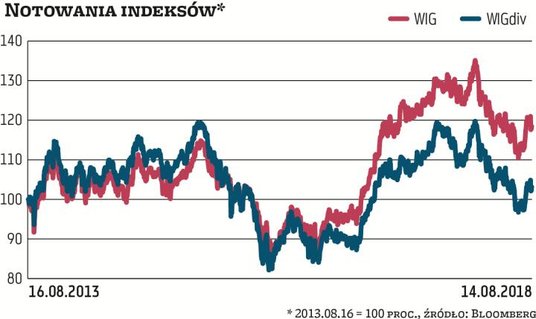 Skład obu omawianych wskaźników różni się dość istotnie pod względem liczby (odpowiednio aż 357 i tylko 35 spółek) oraz doboru samych spółek. W składzie WIGdiv, skoro wypłacają dywidendy, teoretycznie powinny się znaleźć te „lepsze" firmy, odnotowujące zyski, mające pewną sytuację finansową i ugruntowaną pozycję rynkową. Jednak tego typu firmy nie są motorem napędowym indeksów. Ta rola przypada spółkom wzrostowym, szczególnie tym mającym odpowiednio dużą wagę, aby móc istotnie wpływać na ruchy indeksu (ta w obu indeksach nie może przekroczyć w przypadku pojedynczej firmy 10 proc.). Firmy dywidendowe są z reguły stabilniejsze, czasami defensywne, mniej inwestują w rozwój, dlatego mogą się dzielić regularnie zyskami (WIGdiv nie bierze pod uwagę stopy wypłaty, liczy się sam fakt). Jednak przez ostatnie lata trzon WIG i WIGdiv pod względem wag stanowiły te same spółki: PZU, KGHM, Orlen, Pekao, PGNiG, LPP i CCC, które w WIGdiv miały łącznie 70 proc. wagi. W WIG jednak ich udział był mniejszy i wyniósł 43 proc. Po wypadnięciu KGHM i PGNiG z WIGdiv stopy zwrotu obu indeksów mogą się teraz bardziej różnić.