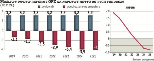 Problem w tym, że efekt netto wprowadzenia PPK będzie uzależniony od kształtu reformy OFE. Uwolnienie środków z tych funduszy może skutkować z jednej strony pozytywnym efektem zastąpienia suwaka procesem wypłat po osiągnięciu wieku emerytalnego, ale z drugiej negatywnym z powodu zmniejszenia udziału akcji w aktywach, co skutkować może podażą. Jeśli jednak ustawodawcy odpowiednio ustawią w czasie limity inwestycyjne PPK i OFE, obie reformy mogą zostać przeprowadzone z neutralnym lub korzystnym wpływem na GPW.