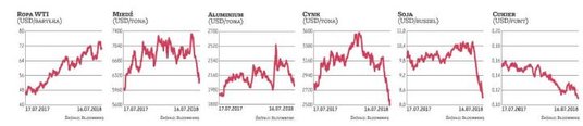 Indeks surowcowy Bloomberg Commodity spadł od początku roku o ponad 5 proc., a od tegorocznego szczytu o ponad 8 proc. Jego przecena byłaby pewnie głębsza, gdyby nie silne zwyżki cen ropy w ostatnich miesiącach i to, że susza w Europie podbiła ceny części surowców rolnych. – Wśród uczestników rynku daje o sobie znać niepokój, że wojna handlowa negatywnie wpłynie na gospodarkę realną oraz wyhamuje globalny wzrost gospodarczy – twierdzi Carsten Fritsch, analityk Commerzbanku.