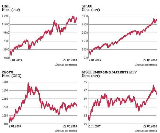 Sytuacja na światowych giełdach staje się coraz mocniej zróżnicowana, przy czym podział przebiega zgodnie z kryterium dojrzałości. Wall Street od początku kwietnia konsekwentnie niweluje skutki tąpnięcia z pierwszych trzech miesięcy roku, nie przejmując się niepokojami związanymi z zaostrzaniem polityki pieniężnej przez Fed czy nasilającą się wojną handlową.