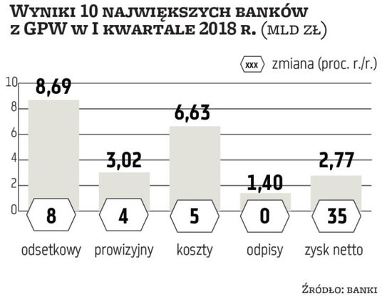Nieco niepokojące może być wyhamowanie rocznego tempa wzrostu wyniku odsetkowego, głównego motoru dochodów sektora, do 8 proc. (biorąc pod uwagę dziesięć największych banków z GPW) z ponad 10 proc. w poprzednich kwartałach. Większości banków nie udało się także poprawić marży odsetkowej netto w porównaniu z poprzednim kwartałem (w ostatnich dwóch latach robiły to niemal nieustannie mimo braku wzrostu oficjalnych i rynkowych stóp procentowych). Wcześniej udawało im się to osiągnąć nie tylko obniżeniem kosztów finansowania (nie rywalizowały o depozyty i nie musiały oferować wyższych cen, poprawiała się też struktura depozytów – rósł udział tych bieżących), ale też wzrostem marż kredytów. Możliwości wzrostu marży netto już się wyczerpały?