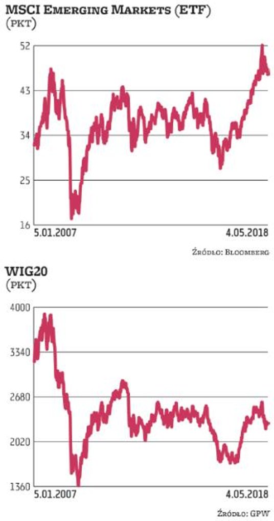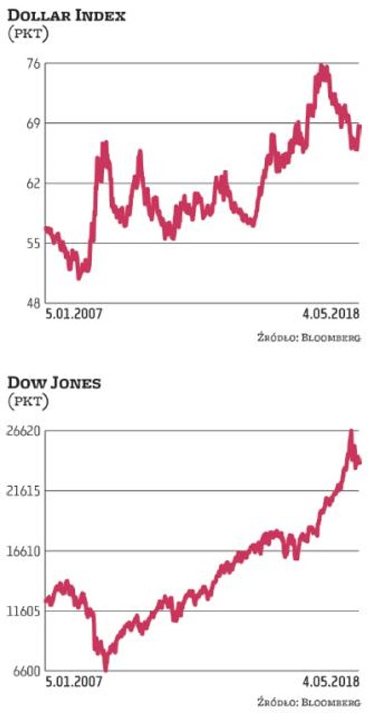 Jedną z nich może być to, że Dow Jones, główny indeks najbardziej rozwiniętego parkietu na świecie, zniżkuje od początku roku o ponad 3 proc. mimo dobrej kondycji amerykańskiej gospodarki, a MSCI Emerging Markets traci jedynie 1,9 proc., mimo że przeciw rynkom wschodzącym przemawia coraz bardziej agresywna polityka Fedu oraz będące jej konsekwencją umocnienie się dolara i wzrost rentowności amerykańskich obligacji skarbowych.