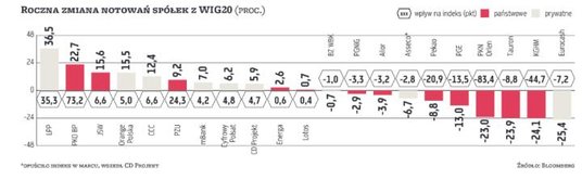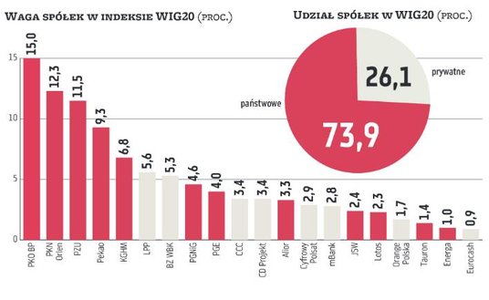 WIG20, najważniejszy i najbardziej prestiżowy indeks na GPW, grupujący największe i najbardziej płynne spółki, od lat zdominowany jest przez spółki kontrolowane przez Skarb Państwa. To grzech pierworodny warszawskiego parkietu, spowodowany prywatyzacją, która – paradoksalnie – była motorem napędowym rozwoju giełdy w pierwszych jej latach. Wystarczy wspomnieć rekordowe oferty pierwotne PZU, PGE, PKO Banku Polskiego czy Telekomunikacji Polskiej. Wydawało się, że wraz z rozwojem, dojrzewaniem warszawskiej giełdy sytuacja będzie się normalizować i udział państwowych spółek w WIG20 będzie maleć. Tymczasem jest odwrotnie.