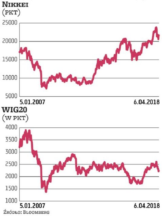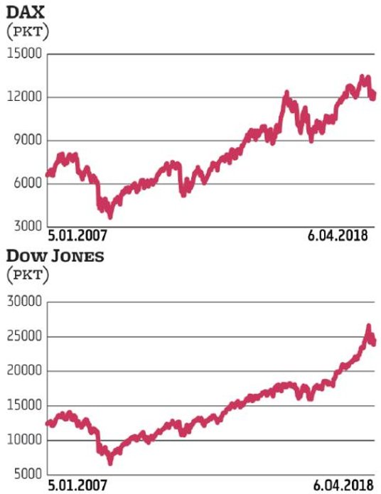 Indeks w Szanghaju miał mniejsze szanse na odrabianie strat ze względu na obchodzone w Chinach w czwartek Święto Zmarłych. Shanghai Composite wciąż więc znajduje się prawie 5 proc. poniżej poziomu sprzed proklamowania wojny handlowej i blisko dołka z początku lutego. W tym przypadku wielkich perturbacji nie należy się chyba jednak obawiać, mając na względzie kojący wpływ chińskiej administracji na rynkowe fanaberie, tym bardziej jeśli miałyby być one kojarzone z wrogimi wobec Chin działaniami. Strach przed stalowymi groźbami dość szybko minął też na japońskim parkiecie. Po jednorazowym, sięgającym 4,5 proc. tąpnięciu z 23 marca, pozostało już tylko wspomnienie. Nikkei od tego czasu zyskał już 5 proc. i wrócił w okolice środka trwającej od dwóch miesięcy konsolidacji, choć wciąż jest 10 proc. poniżej styczniowego szczytu. Mimo prawie 3-proc. czwartkowego wzrostu, słabo prezentuje się indeks niemieckiego parkietu – kraju, który ze względu na swą aktywność na zagranicznych rynkach może najmocniej ucierpieć na wojnie handlowej, nawet gdyby nie stał się jej bezpośrednim i głównym celem.
