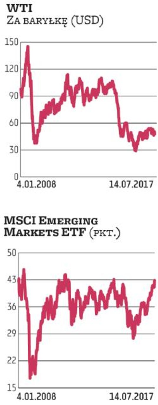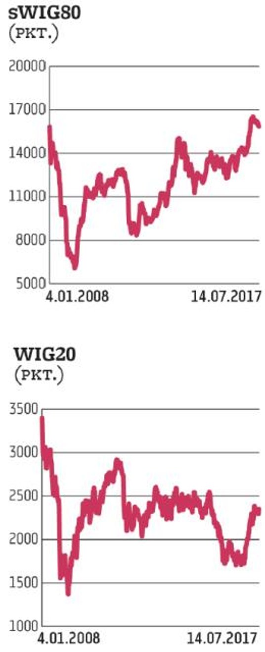 Z wyciąganiem wniosków w kwestii rozwoju sytuacji na rynkach lepiej więc jeszcze trochę poczekać. Trzeba też wziąć pod uwagę deklaracje i sygnały płynące z innych banków centralnych. Z jednej strony nasila się przekonanie, że Europejski Bank Centralny, mimo deklarowanej niechęci, będzie musiał się zająć sprawą dalszych losów programu skupu obligacji, z drugiej zaś pojawia się coraz więcej niepewności w kwestii polityki Banku Japonii. Na rynek dotarły informacje, że EBC już we wrześniu może ogłosić decyzję dotyczącą planu stopniowego wygaszania ilościowego luzowania polityki pieniężnej, a sugestii w tej sprawie można się spodziewać przy okazji sierpniowej konferencji bankierów centralnych w Jackson Hole. Na głównych giełdach europejskich na razie jednak przeważył optymizm płynący zza oceanu i DAX od obrony wsparcia w okolicach 12 400 punktów przeszedł do udanego ataku na 12 600 punktów, co oznacza powrót w granice trwającej od maja konsolidacji tego indeksu.