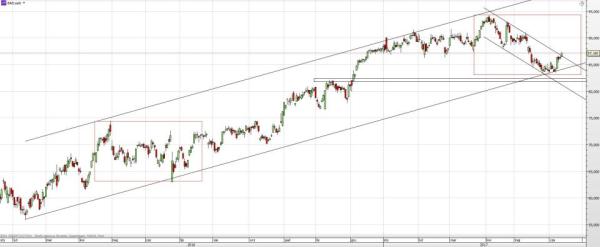 Firma BASF zaprezentowała świetne wyniki za I kwartał 2017 r. Większość wskaźników okazała się lepsza w porównaniu do okresu sprzed roku. Sprzedaż wzrosła o 19 proc., wskaźnik EBITDA o 25 proc., zysk netto o 23 proc. Na wykresie prawdopodobnie obserwujemy zakończenie lokalnej korekty. Trwała ona od kwietnia do końca maja swoją rozpiętością jest łudząco podobna do korekty sprzed roku (maj - czerwiec 2016 r.). Korekta spadkowa w trendzie wzrostowym zakończyła się po napotkaniu dolnego ograniczenia kanału. Obecnie obserwujemy wybicie górą z flagi, która należy do jednej z formacji kontynuacji trendu. Scenariuszem bazowym są dalsze wzrosty na walorach spółki.