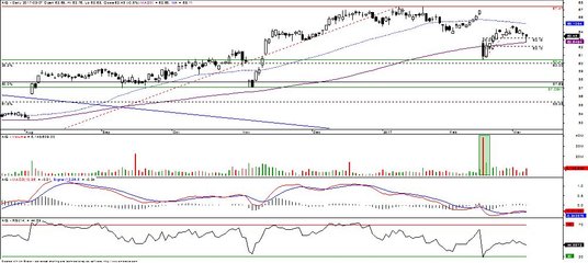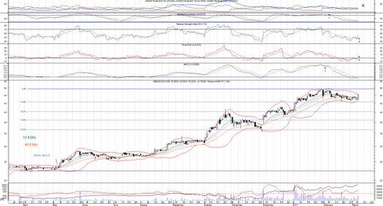 Cena po korekcie technicznej wybiła się w górę, w postaci dużego białego korpusu. Zwyżkę ceny potwierdza wskazanie kupna na Parabolic. Ponadto RSI i ROC przebiły swoje średnie ruchome w górę, a MACD oraz Stochastic zmniejszają różnicę do swoich średnich ruchomych (aby przy potencjalnej zwyżce ceny wygenerować sygnały kupna). Sygnał zajęcia pozycji długiej pojawił się też na DI(+)/DI(-). W układzie średnich ruchomych 13- i 45-sesyjnych obowiązuje wskazanie kupna (od maja 2016 r.) obecnie ta pierwsza średnia odbiła się w górę od drugiej, co należy uznać za bardzo optymistyczny sygnał. Zwyżkę ceny na ostatniej sesji potwierdza też wzrost wolumenu obrotów. Wskaźnik Akumulacja/Dystrybucja uwidacznia napływ środków na rynek tych akcji od listopada 2016 r. (w krótszej ramie czasowej, ponowny napływ od 28.02.2017 r.).