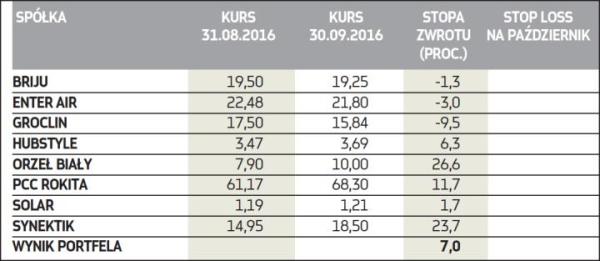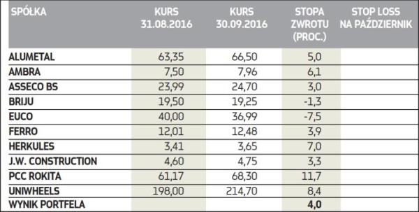 Notowania na warszawskim parkiecie w minionym miesiącu przebiegały pod znakiem zmiennych nastrojów. Analitycy biorący udział w rywalizacji portfeli fundamentalnych poradzili jednak sobie z tym wyzwaniem, poprawiając swój stan posiadania. Kluczem do wypracowania dodatnich stóp zwrotu na wymagającym rynku okazały się odpowiednio zdywersyfikowany portfel i selekcja spółek. Nasi eksperci okazji poszukiwali przede wszystkim w segmencie małych i średnich firm, który, w przeciwieństwie do spółek z WIG20, okazał się stosunkowo odporny na polityczne i zewnętrzne zawirowania. Dzięki takiej strategii po raz kolejny z rzędu okazali się skuteczniejsi od rynku. Uśredniony wynik wszystkich portfeli fundamentalnych po trzech kwartałach 2016 r. wyniósł 3,7 proc., podczas gdy wskaźnik szerokiego rynku WIG stracił w tym samym czasie 1,8 proc. Analitycy od fundamentów byli również górą w korespondencyjnym pojedynku z ekspertami analizy wykresów. W minionym miesiącu ich portfel (podsumowaliśmy go we wtorkowym wydaniu „Parkietu") znalazł się 5,85 proc. pod kreską.