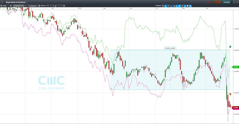 Cena pierwotnie porusza się w trendzie wzrostowym, aby dalej stworzyć coś w rodzaju kanału wzrostowego - po wybiciu przez górne ramię kanału cena konsoliduje się tuż nad tą linią (teraz wsparcie). Kluczowego znaczenia nabiera teraz pokonanie oporu na 44,25 euro - otworzyłoby to drogę wyżej, tj. do 46 i 49 euro.