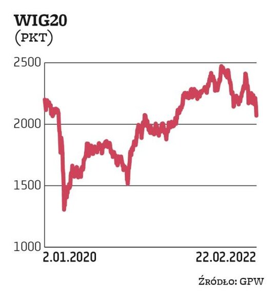 Równo dwa lata temu indeksy na światowych giełdach zaczęły się osuwać w reakcji na doniesienia o pandemii. Jednak szybko odrobiły straty i kilka miesięcy temu większość ustanowiła historyczne maksima (więcej w ramkach powyżej). Od tego czasu nastroje na giełdach pogorszyły się wraz z coraz trudniejszym otoczeniem makro. Teraz doszedł nowy czynnik ryzyka: konflikt na wschodzie, który w tym tygodniu się zaostrzył.