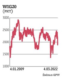 Po dramatycznych wydarzeniach i mocnej przecenie, jakich byliśmy świadkami w pierwszym tygodniu rosyjskiej agresji na Ukrainę, ostatnie dni przyniosły odreagowanie. Jego skala nie była jednak zbyt imponująca, co nie powinno dziwić w kontekście wciąż eskalującego konfliktu, a po drugie, nie objęło ono wszystkich segmentów naszego parkietu. Indeks szerokiego rynku zwyżkował do czwartku o 1 proc., WIG20 rósł o 2 proc., a wskaźnik najmniejszych firm szedł w górę o 2,5 proc. Na tym tle zdecydowanie negatywnie wyróżniał się mWIG40, tracący nieco ponad 2,5 proc. Deprecjacja naszej waluty spowodowała, że indeksy opierające się na dolarowych przeliczniku nadal wyglądały fatalnie. Dolarowy WIG20 zniżkował o 3,3 proc., a MSCI Poland tracił aż 5,8 proc. Trudna i zróżnicowana jest ocena stanu naszego rynku z punktu widzenia analizy technicznej. W przypadku WIG i WIG20 można mówić o obronie naruszonych wcześniej poziomów wsparcia, ale dynamika rozwoju sytuacji raczej nie pozwala na wyciąganie z tego faktu dalej idących wniosków. W zależności od wydarzeń geopolitycznych równie dobrze możemy być wkrótce świadkami dynamicznego ruchu w górę, jak i pogłębienia przeceny. W relatywnie najlepszej sytuacji zdaje się być indeks małych firm, w przypadku którego nie doszło do testowania istotnych poziomów, co także nie pozwala na formułowanie jednoznacznych wniosków. Z jednej strony można mówić o sile tego segmentu rynku, z drugiej zaś pesymiści mogą spodziewać się pogłębienia spadkowej fali. Najbardziej niejednoznaczna zdaje się być ocena sytuacji w segmencie średniaków, gdyż z jednej strony można postawić tezę o obronie wsparcia, ale w niezbyt newralgicznym miejscu, a z drugiej można obawiać się kontynuacji spadków nawet w okolice 4000 punktów, czyli o kolejne 10 proc., dopiero tak oczekując silniejszej reakcji popytu. W przypadku wszystkich segmentów rynku w oczy rzuca się silnie podwyższona aktywność inwestorów, mogąca wskazywać na proces przechodzenia akcji ze spanikowanych graczy w „silne ręce".