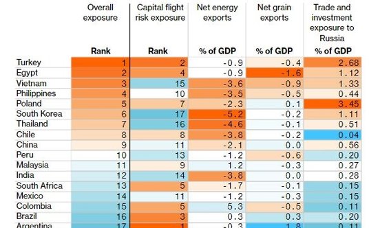 MFW w swoim najnowszym „World Economic Outlook” porównał wpływ wojny do „fal sejsmicznych” przetaczających się przez światową gospodarkę. Ostrzegł również przed możliwym zwrotem na rynkach wschodzących w rodzaju „pętli zagłady”, która doprowadziła Rosję do bankructwa w 1998 r., pomogła w dojściu do władzy Władimira Putina i doprowadziła fundusz hedgingowy Long Term Capital Management na skraj upadku. Bank Światowy obniżył swoją prognozę globalnego wzrostu i ogłosił utworzenie pakietu ratunkowego o wartości 170 miliardów dolarów – większego niż reakcja na Covid-19 – dla krajów dotkniętych kryzysem.