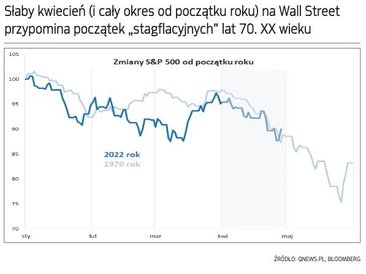 W przypadku rynków akcji kwiecień ma to do siebie, że należy do... najlepszych miesięcy – przynajmniej taki obraz kreują prowadzone przez nas statystyki miesięczne dotyczące Wall Street. Niestety, w tym roku korzystna sezonowość zupełnie zawiodła nadzieje na poprawę koniunktury po słabym I kwartale. Poszukiwania równie słabego kwietnia zaprowadziły nas (w chwili pisania tego artykułu, czyli po sesji 27 IV) aż do... 1970 roku. To dość wymowna data, bo rozpoczynające się wtedy lata 70. XX wieku zasłynąć miały przecież z uporczywej stagflacji – oby tym razem sytuacja w gospodarkach nie rozwinęła się w tak niekorzystnym kierunku.