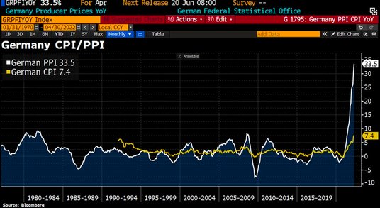 Destatis powiedział, że był to najwyższy wzrost w historii w porównaniu z analogicznym miesiącem poprzedniego roku i że wyniki te zawierają również implikacje wynikające z ataku Rosji na Ukrainę.