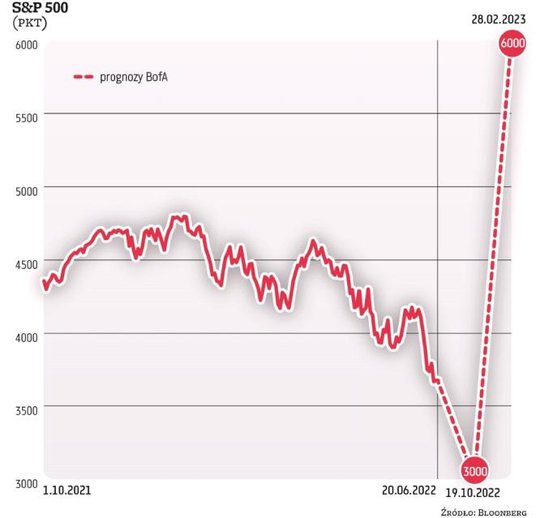 Harnett prognozuje, że później powinna zacząć się hossa, która może na koniec lutego 2023 r. zaprowadzić S&P 500 na poziom 6000 pkt. To byłby historyczny rekord indeksu.