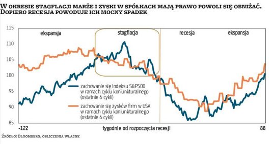Cena bitcoina znalazła się przez chwilę poniżej pamiętnego szczytu z grudnia 2017 r. Rentowność dziesięcioletnich obligacji skarbowych USA z przytupem przebiła poziom 3 proc., zrównując się z rentownością obligacji dwuletnich, która w zaledwie trzy tygodnie wzrosła z 2,5 proc. do 3,5 proc. Marże kredytowe gwałtownie urosły, spychając indeksy obligacji typu high yield wyraźnie poniżej dołków z połowy maja. Na Wall Street, w rzadko spotykanym tempie i skali, padły wszystkie sektory. Nawet indeksy surowców zaczęły wykazywać oznaki zmęczenia dwuletnią hossą. Pojawiły się obawy, że panująca dziś stagflacja niepostrzeżenie przekształci się w recesję.