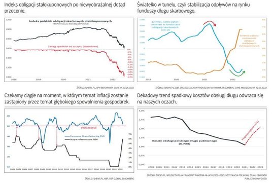 Czy oznacza to, że wszystko zaczyna przemawiać za stopniową zmianą dramatycznej tendencji spadkowej na rynku obligacji stałokuponowych? Jednym z najważniejszych czynników ryzyka jest pogarszająca się kondycja finansów publicznych. Pod tym akurat względem obserwujemy niestety zmianę wieloletniego trendu w niekorzystnym kierunku. Podczas gdy przez mniej więcej dekadę koszty obsługi polskiego długu wyrażone jako procent PKB systematycznie malały, to już kwietniowa projekcja rządu na potrzeby unijnej procedury EDP pokazała dramatyczne odwrócenie tej tendencji w tym i przyszłym roku. W 2023 roku koszty obsługi długu mogą przekroczyć 2 proc. PKB, co byłoby poziomem niewidzianym od dziesięciu lat.