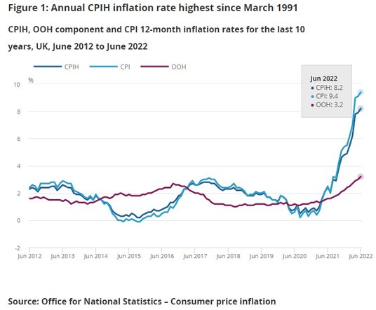 Bank spodziewa się, że inflacja osiągnie szczyt na poziomie około 11 proc. w dalszej części roku, podczas gdy nowe dane ONS we wtorek pokazały, że płace realne w Wielkiej Brytanii w ciągu trzech miesięcy do maja odnotowały największy spadek od początku rekordów w 2001 r., ponieważ podwyżki płac nie zdołały się zbliżyć do stopy inflacji.