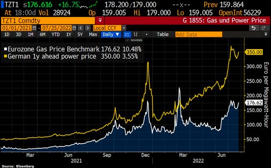 Ceny gazu ziemnego wzrosły w Europie, a holenderski benchmark TTF wzrósł o 12 proc. do 179 USD za megawatogodzinę. W USA kontrakty terminowe na gaz ziemny wzrosły o 5,2 proc. do 8,73 USD za milion brytyjskich jednostek cieplnych. Cena europejska, po przeliczeniu, wynosi około 52 USD za milion BTU, co stanowi ogromną premię w stosunku do cen w USA, odzwierciedlając fakt, że Europa musi importować większość swojego gazu ziemnego i potrzebuje go przerobić na postać skroploną.