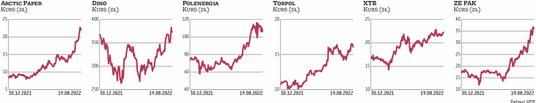 Niesłabnącym popytem niemal od początku 2022 roku cieszą się akcje Arctic Paper. Kurs papierniczej grupy jest już o ponad 180 proc. wyższy niż na początku stycznia, wyznaczając w ostatnich dniach nowe historyczne maksima. Dzięki dobrej koniunkturze na rynku papieru i celulozy Arctic wszedł w okres wynikowych żniw, a perspektywy na kolejne okresy w ocenie analityków wyglądają obiecująco. – Obecne bardzo korzystne otoczenie cenowe zarówno na rynku papieru, jak i celulozy przekłada się na rekordowe w historii spółki raportowane wyniki, a sygnały o dalszych podwyżkach cenowych na rynku dają przestrzeń do pozytywnych zaskoczeń także w II półroczu 2022 r. – oczekuje Łukasz Rudnik, analityk Trigon DM. Co istotne, spółka nie ma problemów z przenoszeniem rosnących kosztów na ceny produktów końcowych, a dzięki rozwijanym własnym źródłom energii ma przewagę nad konkurencją.