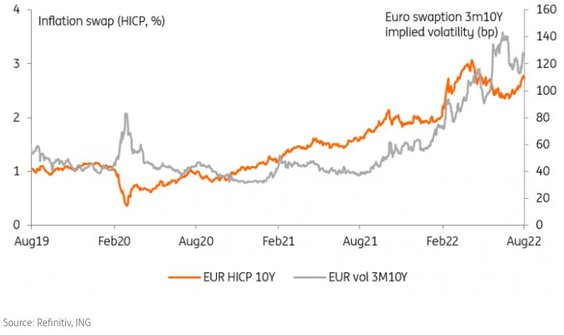 Oczywiście należy uważać na ekstrapolację kilku dni na niepłynne rynki, ale jednoczesny wzrost oczekiwań podwyżek i inflacji odzwierciedla fakt, że duża część dynamiki inflacji jest poza kontrolą banku centralnego. Dotyczy to w szczególności inflacji energii, o ile jest ona napędzana ograniczeniami podaży. Można kwestionować, czy to prawda w dłuższych okresach czasu, ale to nie pierwszy epizod stóp front-end i swapów inflacyjnych poruszających się zgodnie w tym roku. Łącznie wskazują one na nadchodzące trudne czasy dla aktywów finansowych, ponieważ nie oznaczają ani końca zacieśniania polityki przez bank centralny, ani końca przegrzanej dynamiki inflacji.