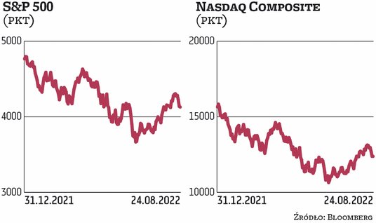 Na globalnych rynkach dawała o sobie znać w środę nerwowa atmosfera towarzysząca czekaniu przez inwestorów na rozpoczynające się następnego dnia sympozjum bankierów centralnych w Jackson Hole. Europejskie indeksy giełdowe balansowały między umiarkowanymi spadkami i lekkimi zwyżkami, a dolar dalej był silny. Po południu za 1 euro płacono 0,992 USD, a dzień wcześniej kurs był najniższy od dwóch dekad. Rykoszetem dostawała również polska waluta. Za 1 dolara płacono nawet 4,81 zł, a za 1 franka rekordowe 4,997 zł. Ta nerwowość na rynkach może się utrzymywać co najmniej do piątkowego wystąpienia w Jackson Hole Jerome’a Powella, prezesa amerykańskiej Rezerwy Federalnej. Jak na razie inwestorzy oczekują od niego dosyć „jastrzębiego” przekazu. Szanse na to, że pozytywnie zaskoczy rynki, zapowiadając dużo wolniejsze tempo podwyżek stóp procentowych, wydają się być małe. Neel Kashkari, szef oddziału Fedu w Minneapolis, uznawany dotąd za monetarnego „gołębia”, stwierdził, że inflacja jest bardzo wysoka, a bank centralny musi się koncentrować na jej zwalczeniu.