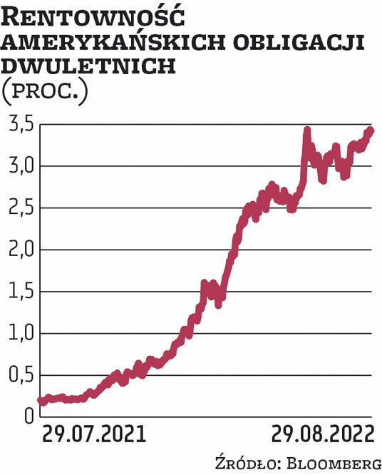 Dochodowość amerykańskich papierów dwuletnich sięgała w poniedziałek nawet 3,466 proc., co oznacza przebicie przez ten wskaźnik szczytu z czerwca tego roku i dotarcie do pułapu poprzednio rejestrowanego 15 lat temu. Inwestorzy reagują na wystąpienia przedstawicieli banków centralnych z konferencji w Jackson Hole.