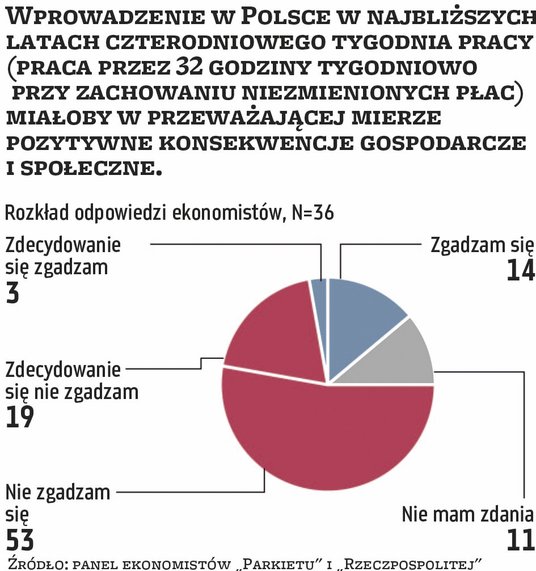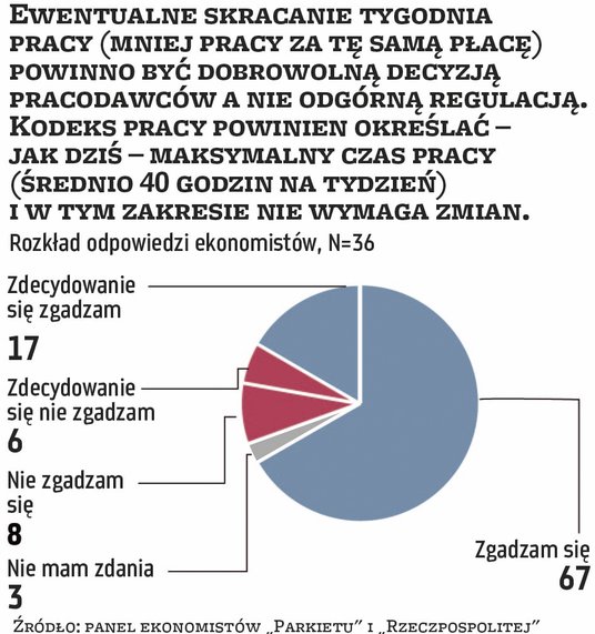O to, jakie byłyby prawdopodobne skutki skrócenia w Polsce tygodnia pracy w przewidywalnej przyszłości, zapytaliśmy grono wybitnych ekonomistów, uczestników panelu eksperckiego „Parkietu” i „Rzeczpospolitej”. Wyniki naszej sondy pokazują przede wszystkim jedno: koncepcja czterodniowego tygodnia pracy jest niejasna.