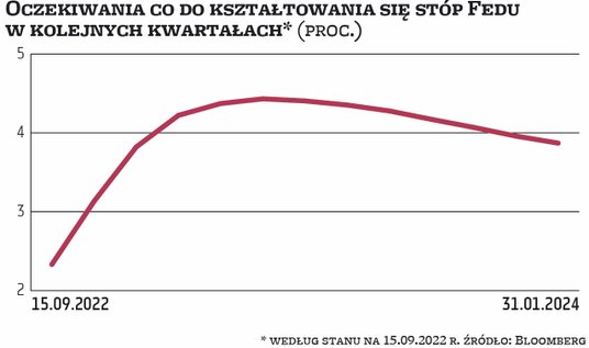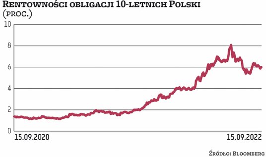 Wydarzenia na światowych rynkach mają też relatywnie mniejsze przełożenie na polskie dziesięciolatki. Ich rentowności wprawdzie wróciły powyżej 6 proc., ale daleko im do 8 proc., odnotowanych w szczycie inflacyjnej paniki z czerwca. Wprawdzie inflacja nad Wisłą przekracza 16 proc., jednak wyraźne hamowanie gospodarki nie daje krajowym władzom monetarnym miejsca na dalsze znaczące podnoszenie kosztu pieniądza.