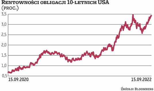 Nie tylko w rynki akcji uderzyły wtorkowe dane z USA, które wskazywały na wolniejsze od prognoz opadanie inflacji. Fakt, że w sierpniu roczna dynamika cen spowolniła za oceanem zaledwie do 8,3 proc., podbił oczekiwania co do skali kolejnych podwyżek stóp przez Fed, odbijając się także na wycenach na głównych rynkach obligacji skarbowych. Rentowności amerykańskich dziesięciolatek zbliżyły się do 3,5 proc. i są o krok od poprawienia 11-letniego maksimum sprzed trzech miesięcy.