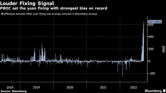 W zeszłym tygodniu juan osłabił się powyżej poziomu 7, zarówno w handlu wewnętrznym, jak i zewnętrznym, kwestionując tolerancję decydentów na zmienność przed przetasowaniami partii dwa razy na dekadę w przyszłym miesiącu. Spadki juana przyspieszyły w ciągu ostatniego miesiąca, gdy dolar wzrósł, a chińska gospodarka spowolniła z powodu blokady Covid i kryzysu na rynku mieszkaniowym.