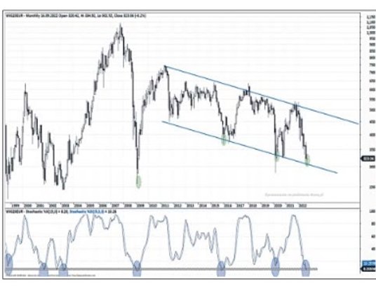 – Po kilku sesjach odbicia z początku miesiąca w pierwszej połowie zeszłego tygodnia S&P 500 silnie zniżkował, tworząc na wykresie pesymistycznie wyglądającą, długą czarną świecę – mówi Przemysław Smoliński, analityk BM PKO BP. Jak dodaje, kolejne dni przyniosły kontynuację spadków i obecnie indeks testuje ostatnie, lokalne minimum. – Jego pokonanie potwierdziłoby dalszy ruch w dół, w kierunku dołka z połowy czerwca, który zakończył falę spadkową z pierwszej połowy roku. Zejście poniżej niego oznaczałoby powrót trendu spadkowego w długim horyzoncie inwestycyjnym – przewiduje Smoliński. – Podobnie sytuacja przedstawia się na sporej części pozostałych indeksów zagranicznych. Warto jednak zauważyć, że na przykład DAX znajduje się obecnie znacznie bliżej analogicznego minimum z połowy roku, a WIG20 pokonał je już kilka tygodni temu – mówi ekspert BM PKO BP.