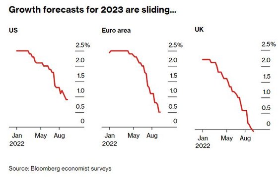 Rezultatem jest najszersze od 15 lat zaostrzenie polityki pieniężnej — zdecydowane odejście od ery tanich pieniędzy zapoczątkowanej przez kryzys finansowy z 2008 roku, który wielu ekonomistów i inwestorów postrzegało jako nową normalność. Według JPMorgan Chase w bieżącym kwartale nastąpią największe podwyżki stóp procentowych przez główne banki centralne od 1980 roku i na tym się nie skończy. Tylko w tym tygodniu Fed po raz trzeci podniesie swoją główną stopę procentową o 75 punktów bazowych. Przewiduje się, że Bank Anglii zwiększy swój benchmark o 50 punktów bazowych, a podwyżki spodziewane są między innymi w Indonezji, Norwegii, Filipinach i Szwajcarii. Przewidywania spełnił szwedzki Riksbank, podnosząc stopy o cały punkt procentowy.