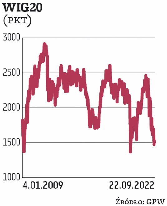 Ostatnie dni przyniosły wyraźne zróżnicowanie nastrojów na warszawskim parkiecie. Indeksy największych firm i szerokiego rynku zwyżkowały do środy po 0,3–0,5 proc. To niewiele, ale w przypadku WIG20 na korzyść byków przemawia udana, choć symboliczna obrona przed zejściem poniżej 1500 pkt. To jednak nic więcej niż kontynuacja trwającej od trzech tygodni tendencji bocznej. To zawsze coś, po tym jak indeks niedawno testował dołek z listopada 2020 r. Jednak trudno jeszcze mówić o rozstrzygnięciu i zażegnaniu zagrożenia. Przeszkodą może być umocnienie się dolara, widoczne w minioną środę. W efekcie WIG20 przeliczony na amerykańską walutę zniżkował o ponad 2 proc., a MSCI Poland – o 2,5 proc. Co ciekawe, osłabienie złotego zwykle niekorzystnie wpływa na indeks największych firm, a tym razem pogorszyły się nastroje w segmencie małych i średnich spółek. mWIG40 zniżkował o 0,6 proc. Obraz rynku jest tu bardzo niekorzystny. Po sięgającym niemal 5,5 proc. tąpnięciu z poprzedniego tygodnia byki nie znalazły siły na nawet symboliczne odreagowanie. Pogłębienie spadkowej tendencji robi bardzo złe wrażenie. Nie byłoby niczym dziwnym, by w grze znalazł się dołek z listopada 2020 r., do którego brakuje już tylko około 500–700 pkt. Biorąc pod uwagę atmosferę na rynkach, nie jest to zbyt wiele, choć z drugiej strony trzeba brać pod uwagę fakt, że indeks średniaków spadł od początku roku o 29 proc., więc nie można wykluczyć wzrostowego odreagowania. W przypadku sWIG80 sytuacja nie jest lepsza, tyle tylko, że indeks małych firm od początku roku traci „jedynie” 17 proc. Polska gospodarka wysyła sygnały pogarszania się koniunktury, ale dalszy rozwój sytuacji na naszym parkiecie zależeć będzie przede wszystkim od tego, co będzie działo się na głównych giełdach światowych oraz emerging markets.