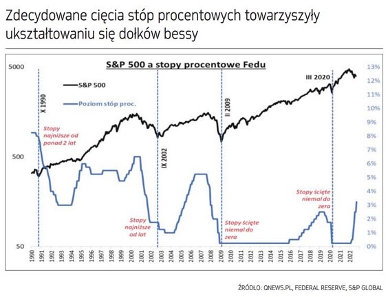 Amerykański indeks S&P 500 w ostatnich dniach ponownie zbliżył się do umownego progu bessy, rozumianego jako poziom o 20 proc. niższy od historycznego szczytu (w cenach zamknięcia ten próg to ok. 3837 pkt). Owa granica została wcześniej przekroczona już w połowie czerwca, a w chwili pisania tego artykułu główny benchmark Wall Street znów znalazł się o kroczek od niej.