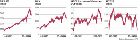 Mocny dolar i awersja do ryzyka nie przeszkadzały nadmiernie rynkom wschodzącym. MSCI Emerging Markets do środy zwyżkował o 0,9 proc. Nie zmienia to jednak słabego obrazu sytuacji. Wskaźnik znajduje się na poziomie najniższym od ponad dwóch lat i nie widać przesłanek do tego, by miała nastąpić poprawa. Raczej należy się liczyć z pogłębieniem tendencji spadkowej. Od początku lipca nieodmiennie słabo zachowuje się Shanghai Composite, który do środy tracił ponad 1 proc., w ciągu ostatnich niemal czterech miesięcy poszedł w dół o 11 proc., a od początku roku – o 16,5 proc. O bessie nadal trudno mówić, ale z pewnością nie ma też powodów do optymizmu. Fatalnie za to prezentuje się indeks giełdy w Hongkongu, tracący od początku roku ponad 30 proc., a do środy zniżkował niemal o 2 proc. Niewiele lepiej dzieje się na parkiecie tajwańskim. W naszym regionie sytuacja jest znacznie bardziej zróżnicowana. Indeksy w Ukrainie i Rosji rosły po 1,5–2 proc. W Tallinie i Wilnie nieznacznie traciły.