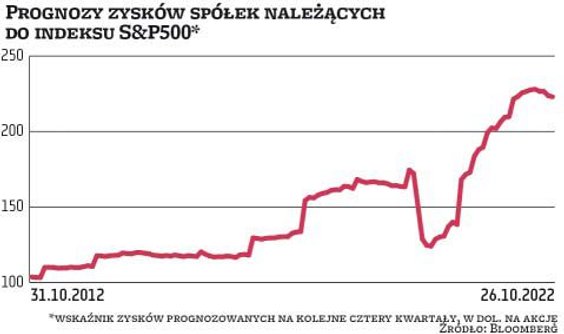 Biorąc pod uwagę wysoką efektywność amerykańskiej giełdy, powinno to szybko znaleźć odzwierciedlenie w prognozach zysków na kolejne kwartały. Do tej pory skala spadku prognozowanego zysku na akcję (EPS) dla spółek indeksu S&P 500 nie była znacząca. Wyniosła około 3 proc., a to może oznaczać jeszcze spory potencjał pogorszenia wyników spółek zza oceanu.