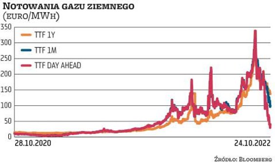 Jak dodaje Kozłowski, wolniej spadają ceny kontraktów miesięcznych czy rocznych. Choć według niego nie można przesądzać o trwałości tendencji, to spadek notowań gazu w Europie poprawia nastawienie inwestorów do aktywów europejskich. Zyskują na tym euro, złoty, europejskie akcje, a także obligacje.