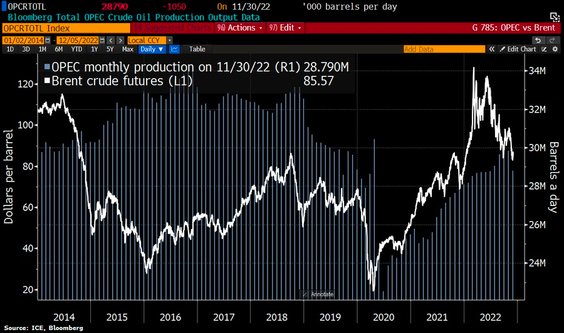 Niektórzy członkowie OPEC, w tym saudyjski minister energii książę Abdulaziz bin Salman, przedstawili pomysł kolejnego cięcia produkcji, po obniżce o 2 miliony baryłek dziennie w październiku, która zaskoczyła Biały Dom i rozgniewała większość Waszyngtonu. Cięcie pokazałoby, że OPEC+ był zaniepokojony chińskimi blokadami mającymi na celu powstrzymanie odradzającej się epidemii Covid-19 i ich wpływem na popyt – obawy, które spowodowały spadek cen ropy w ostatnich dniach.