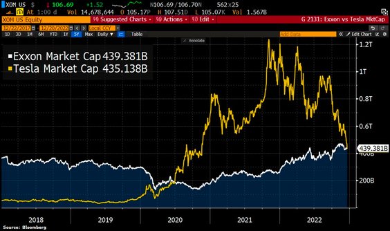Akcje Tesli spadły do tej pory o 60,9% w 2022 r. – co byłoby również najgorszym rokiem w historii – a kapitalizacja rynkowa Tesli spadła we wtorek w stosunku do dwóch innych spółek S&P 500: Johnson & Johnson (JNJ) i Exxon Mobil (XOM). Tesla jest obecnie dziewiątym najcenniejszym kapitałem pod względem kapitalizacji rynkowej w indeksie S&P 500 po tym, jak wcześniej zajmowała 5. miejsce na tej liście, ustępując tylko Apple, Microsoftowi, Alphabetowi i Amazonowi.
